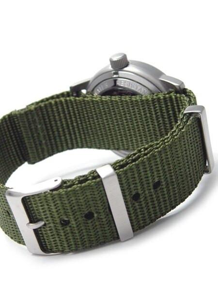Band:Green NATO style nylon strap with buckle, 20mm.