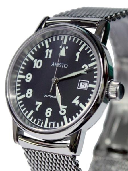 This Aristo 4H11TU/4 model is a dressy version of your standard aviator watch. It features a 38.5mm polished stainless steel case, a black dial with luminous numbers and markers, a date window at 3:00, luminous filled silver hour and minute hands, and a silver seconds hand. The crown is screw-down. The topper though is the striking steel mesh bracelet with a deployant clasp. It really grabs attention when placed on your wrist. Inside is a Swiss automatic movement viewable through an exhibition case back. And, a scratch resistant sapphire crystal assures you your watch will look new for years to come.