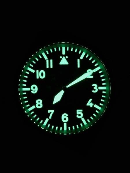 Germans are known for their attention to detail. You will appreciate this when you see this Aristo precision-made titanium case. It just exudes quality on your wrist. And, it is stronger than steel and much lighter. Inside is a Swiss automatic (self-winding) movement providing long life and assurance of reliability. The aviator style black dial is offset by luminous hands, numbers and markers for great visibility in low light conditions. SuperLuminova C-3 is used for a bright green glow when charged by a strong light source. It glows for up to six hours or more depending on conditions.