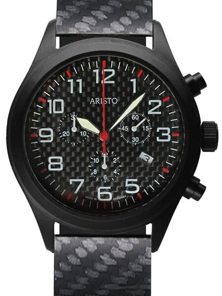 Aristo Aviator Style Quartz Chronograph Watch with Carbon Fiber Dial #0H15