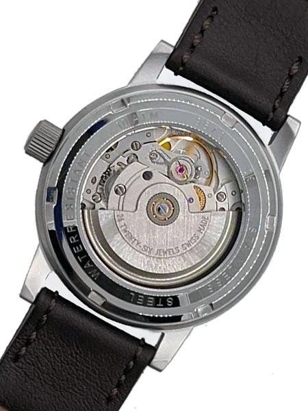 The Aristo 3H33N pilot watch is a classic 38.5mm case design. It features a Swiss SW200 automatic (self-winding) movement, SuperLuminova treated hour and minute hands, a date window at 3:00, a scratch-resistant sapphire crystal, and a sandblasted (non-reflective) stainless steel case. A display caseback allows you to see the movement in action. The pilot style dial has luminous 60 minute markings on the outer dial and luminous hours on the inner dial. The watch is fitted with a leather (aviator style) strap with rivets near the lugs and it has a stainless steel buckle clasp.