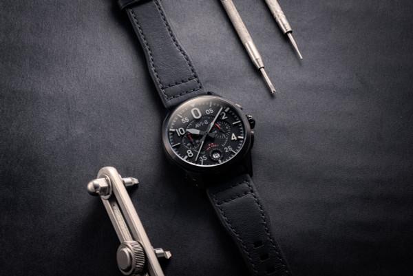 AVI-8 Spitfire Lock Chronograph - Slate Black, Japanese Meca-Quartz Chronograph, Black Dial, Leather Strap #AV-4089-03