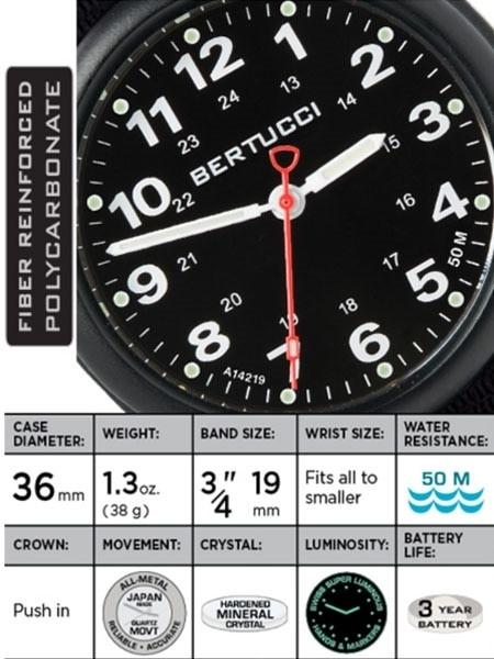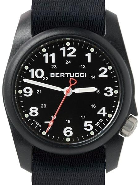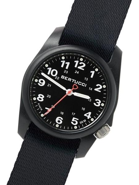 Bertucci A-1R Field Comfort watch with fiber reinforced polycarbonate Unibody case, Black Nylon Strap, Black Dial #10500