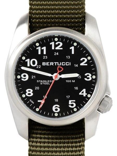Bertucci A-1S Black Dial Stainless Steel Watch with Patrol Olive Nylon Strap #10112