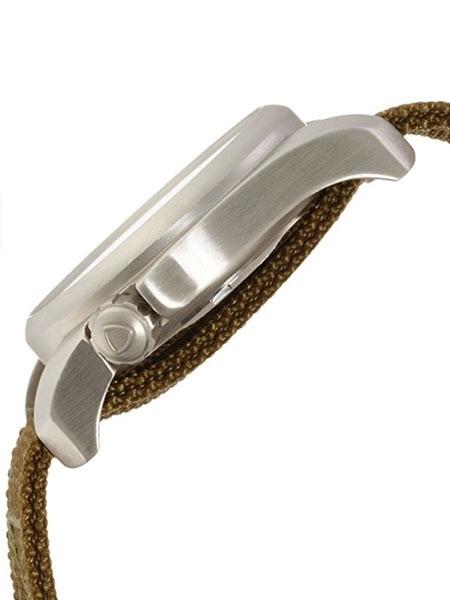 The A-1S is the quintessential field watch featuring a Japanese quartz movement, an offset crown at 4:00, a black dial with white hour markers, a red seconds hand, luminous hands and hour markings, a white 24-hour military time scale, a screw down crown, screw-in case back, scratch resistant mineral crystal, patented DX3 case design, and a patrol olive green colored one piece nylon strap. The lug bars are solid and designed not to break or come loose.