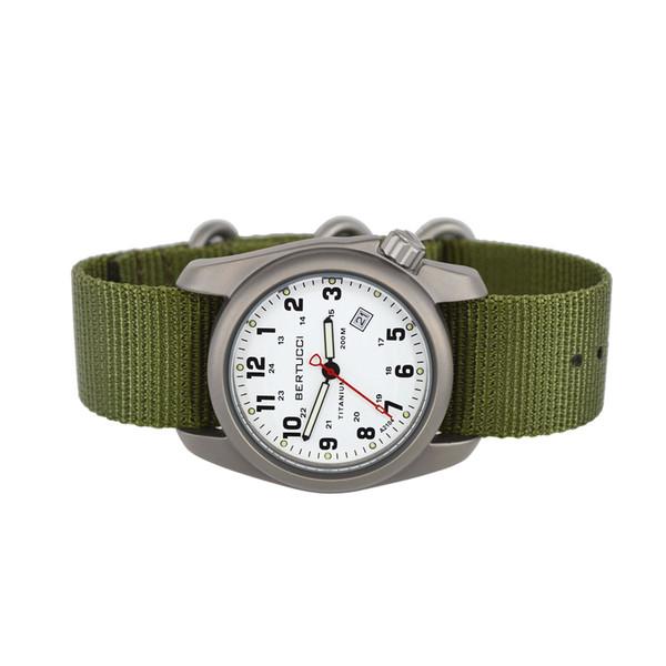 Bertucci A-2T White Dial Titanium Watch with Olive Nylon Strap