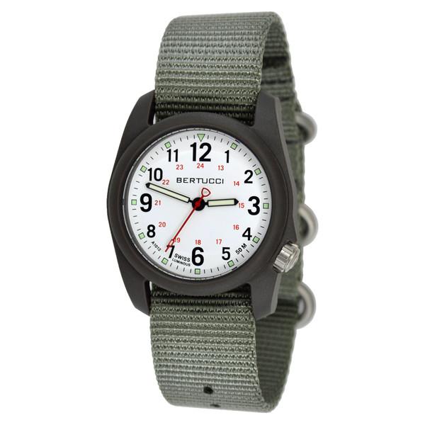 Bertucci DX3 Field Resin Watch, Defender Drab Nylon Strap, White Dial - 11019