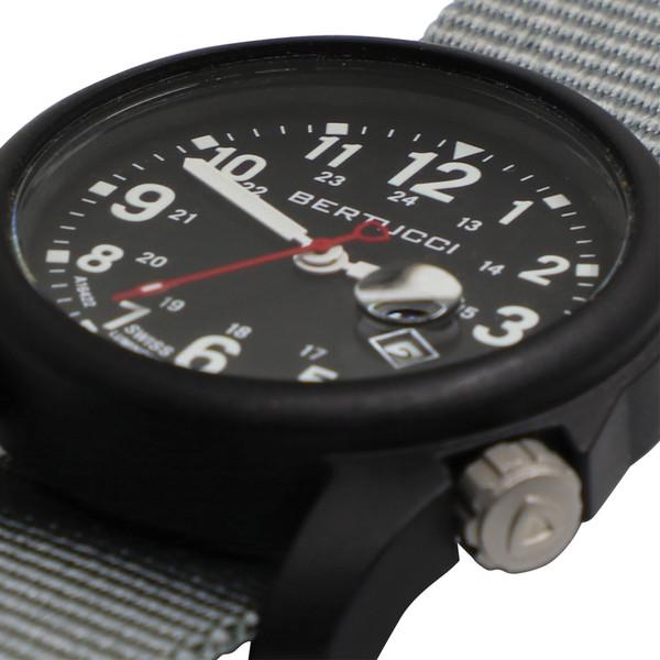 This new 10 year special edition adds a magnified date at the 4:00 position, 100 meter water resistance and an improved all metal quartz movement from Japan. You still get all the original features including a super light, comfy poly-resin case, and the amazing Bertucci nylon strap.