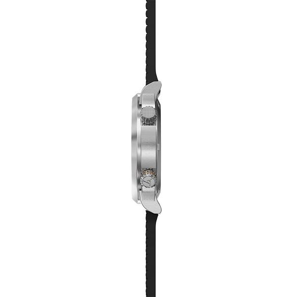 2-piece, spring-loaded screw down case back (real super compressor), screw down crown at 4h, turn-only crown at 2h, stainless steel movement holding ring Brushed by hand with polished chamfer edges, embossed case back and engraved crowns, at 4h filled with Swiss Super-LumiNova C3 X1 120-click unidirectional inner rotating diver bezel with indices from Swiss Super-LumiNova C3 X1 (green afterglow)