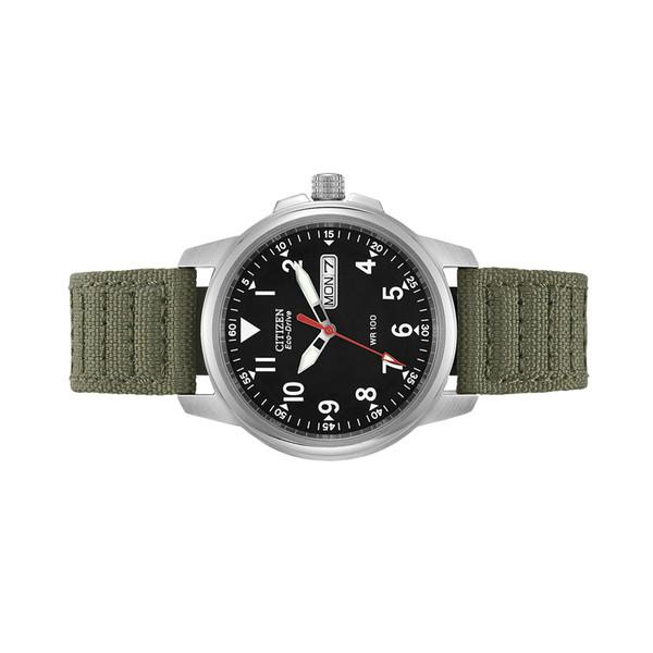 Citizen Eco-Drive Garrison Watch with Black Dial and Green Strap #BM8180-03E
