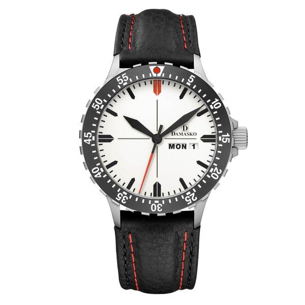 The clear dial features optimal readability, even in challenging conditions, thanks to the unique shape of the hands and hour markers, which are coated with long-lasting luminous paint. The red-coated second hand, along with a red index at 12 o'clock and the red bilight, adds a distinctive touch. The watch is equipped with the DAMASKO rotor, which uses two ceramic ball bearings and is adjusted in six positions. The case features the proprietary "DAMASKO System" with a screwed crown for added protection. With a diameter of 40mm, a rotating bezel diameter of 41.9mm, and a total height of 12.3mm, the watch has a lug-to-lug distance of 48.6mm and weighs 73g without the strap.