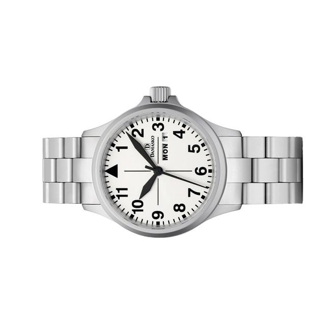 The knurled screw-down crown and mechanism is fully hardened and along with a screw-in case back, provides you with a 100-meter water resistance rating. A sapphire crystal with anti-reflective coating on both sides gives you increased clarity when you check the time. The day and date window is found at a special position slightly below the center axis. Comes on Damasko's hardened steel bracelet, DA3X-Steel, for the ultimate look.