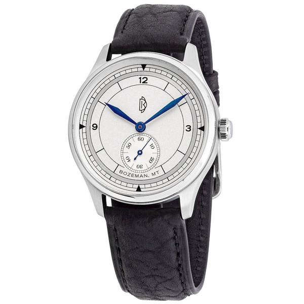 From the hands of an experienced craftsman comes the DB Model 1B. Immediately at first glance, you can tell it is a product of quality. The German case, from Ickler, was made specifically for the Model 1. The vintage style dial is done in matte silver, with a polished chapter annular ring just at the tip of the minute hand. At the 6:00 position is an offset seconds hand. Below this is "Bozeman, MT", where DB watches are assembled and regulated in Dave's own workshop.