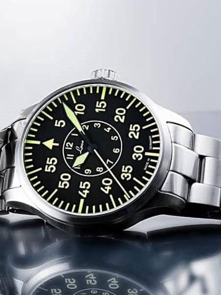 The Laco Faro 861891 model has a 42mm stainless steel case design that houses a Laco 21 automatic (self-winding) movement. The ROM model has a black Type-B (or pilot) dial with large minutes and small hours. The hands and dial markers are treated with SuperLuminova for excellent readability in the dark. Like the original WWII Laco watches, there is no date window. The Faro comes fitted with a stainless steel bracelet with a deployant clasp.
