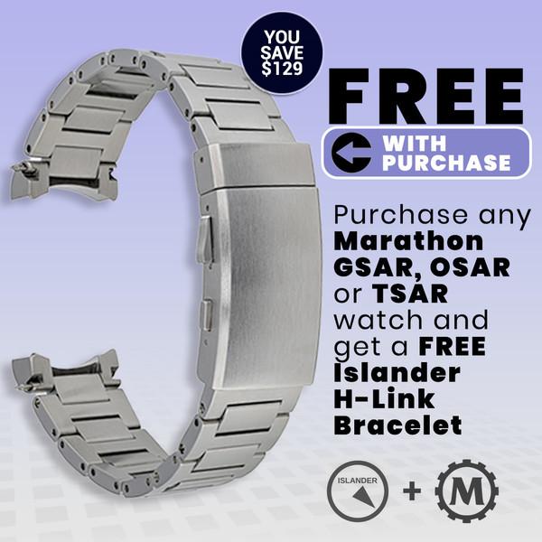 The Marathon TSAR is for water resistant down to 30 ATM - 300 meters (1000 feet) underwater. Made from 316L surgical grade stainless steel, the TSAR is a purpose built watch that will not let you down no matter what adventure you may take it. The glass of the TSAR is in fact not glass, but a synthetic sapphire which will resist scratches, and ensure maximum dial legibility.