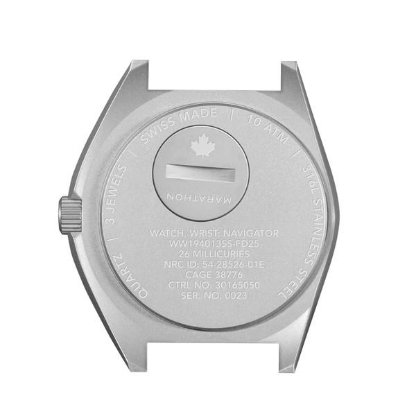 Marathon Navigator (NAV) watches were originally developed in partnership with Kelly Air Force Base in 1986. The NAV Series consists of timepieces engineered to stand up to the rigours of high-altitude flight — and even possible ejection from a fighter aircraft.