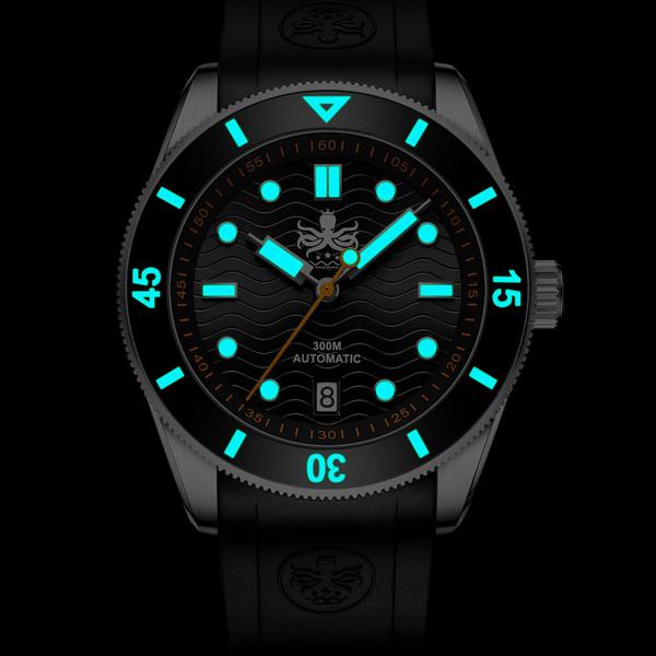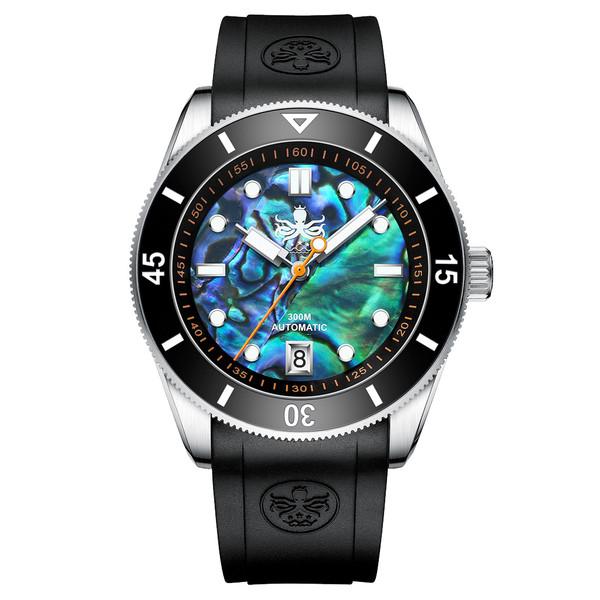 PHOIBOS Abalone Wave Master 300-Meter Automatic Dive Watch with Rubber Strap