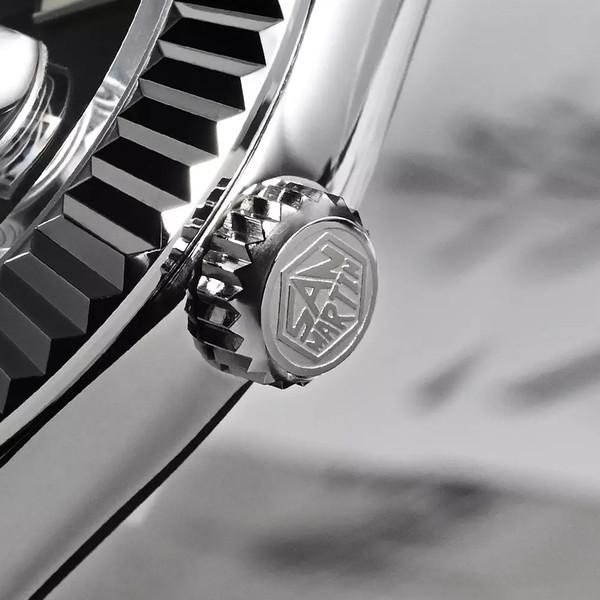 The San Martin hexagonal logo is applied below the 12 o’clock. Securing the watch to your wrist is a sturdy three link bracelet with an on-the-fly adjustable clasp, ensuring a perfect fit at all times.